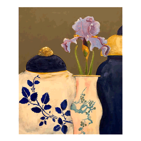 Often my paintings include vases or ginger jars. The blue and white combination fascinate me. But where do they come from? They originated in China in the Qin Dynasty, Originally, ginger jars were used for storing and transporting spices. They began being exported to Europe in the 19th century. That's also when they started being used as decorative objects.